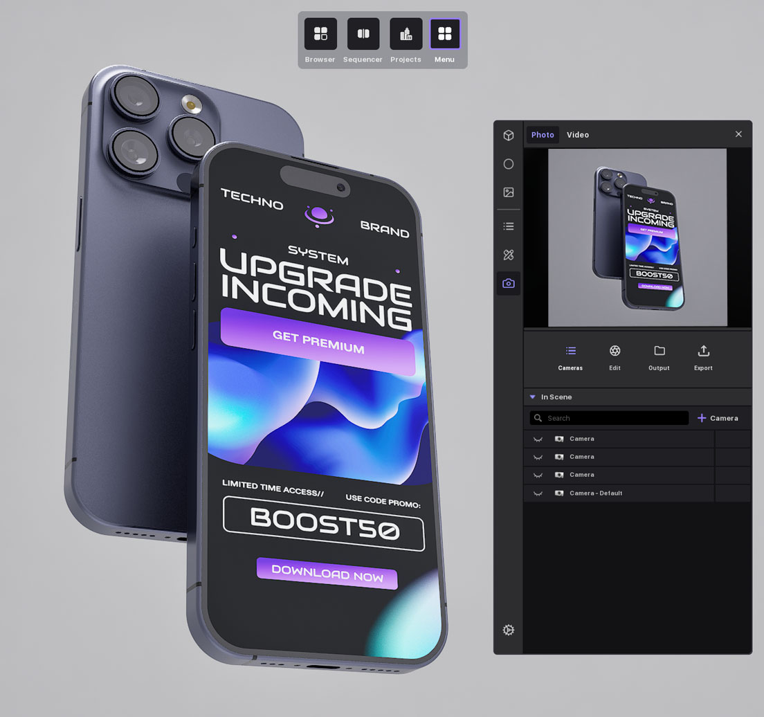 Turn your scenes into high-quality mockups for presentations, catalogs, e-shops, or client approvals. Combine models, materials, and camera views to produce polished visuals.